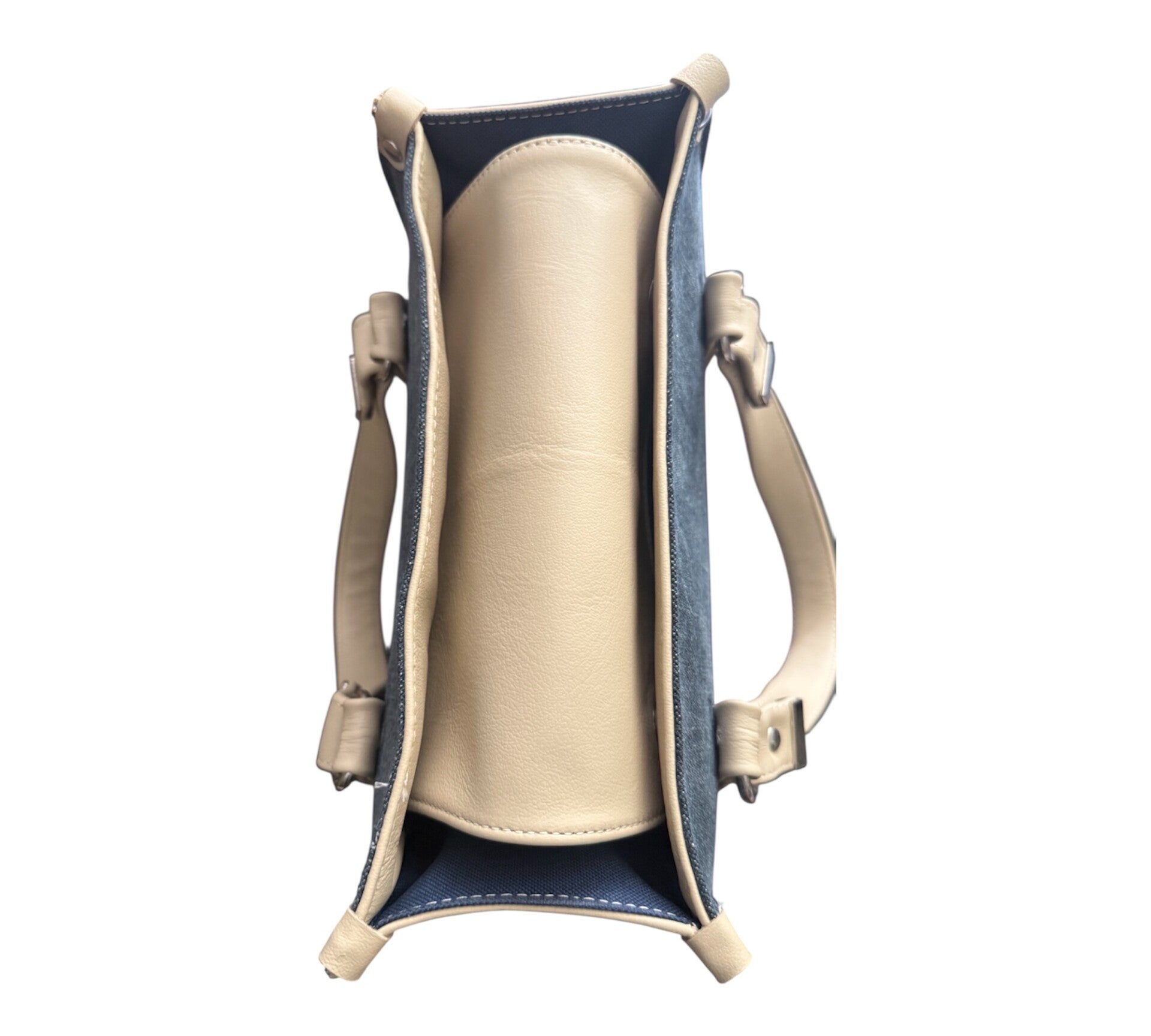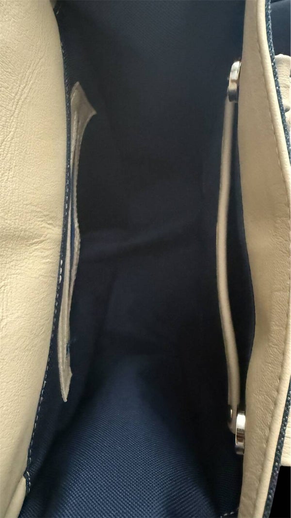 Crafted with a sophisticated mix of leather and denim on the exterior and lined with navy blue waterproof canvas inside, the Laura Bag is built for both durability and everyday elegance.